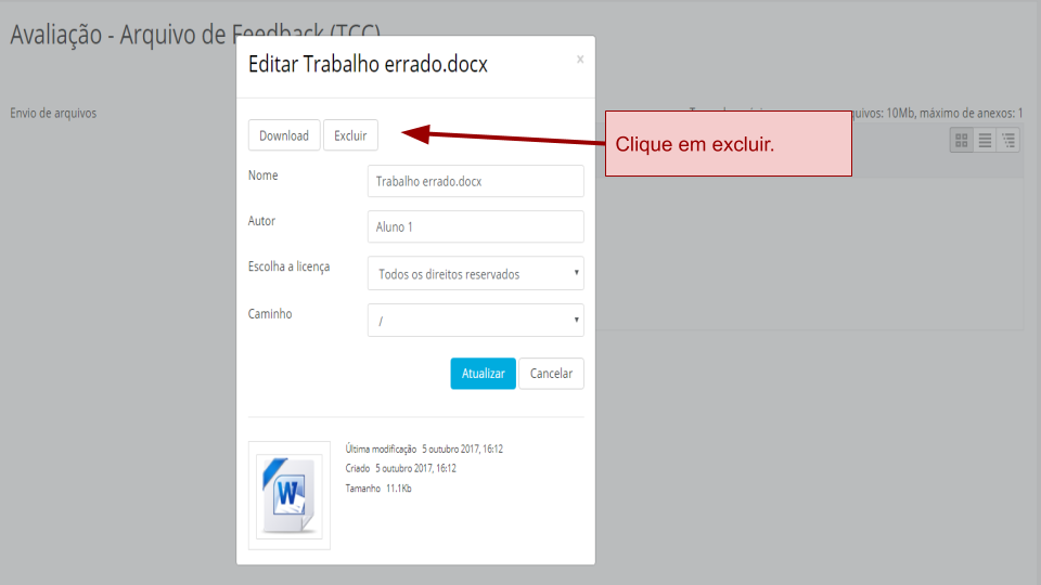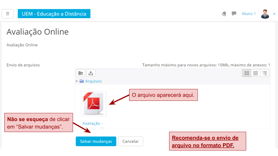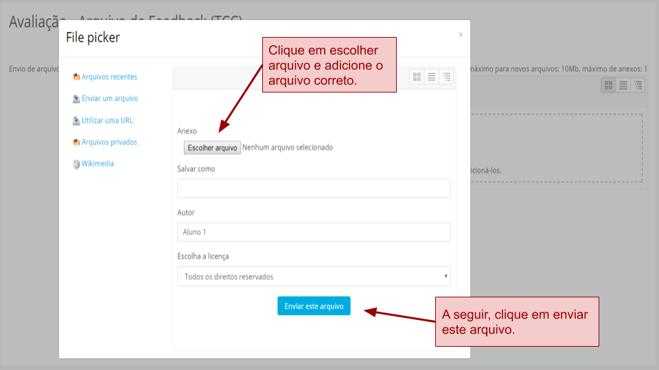 Enviando Avaliação - Envio de Arquivo